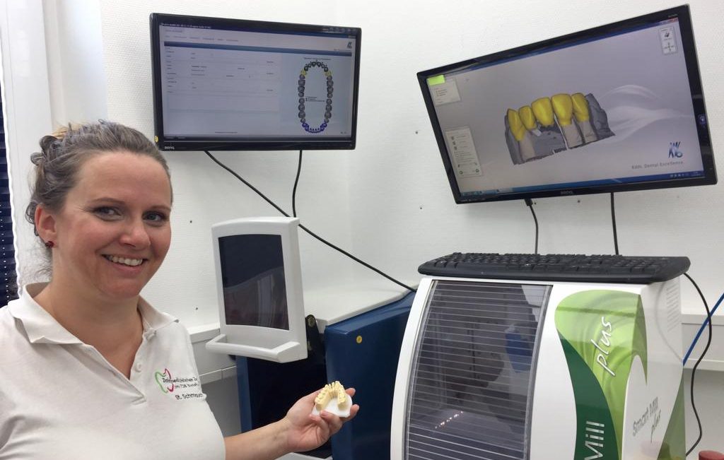 Unsere CAD/CAM-Fräsanlage zeichnet sich auch durch ihre Umweltfreundlichkeit aus, da sie den Bedarf an Gipsmodellen und Abdrücken reduziert. Wir können die digitalen Daten direkt von unseren fortschrittlichen Abformgeräten oder von Ihrem Zahnarzt übernehmen und die Herstellung des Zahnersatzes sowie anderer zahntechnischer Arbeiten direkt in unserem Praxislabor durchführen.
